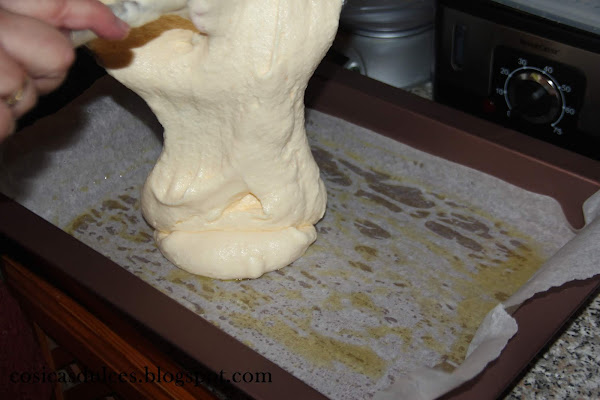 Extendemos la masa en una bandeja y horneamos unos 7 minutos a 180 grados.