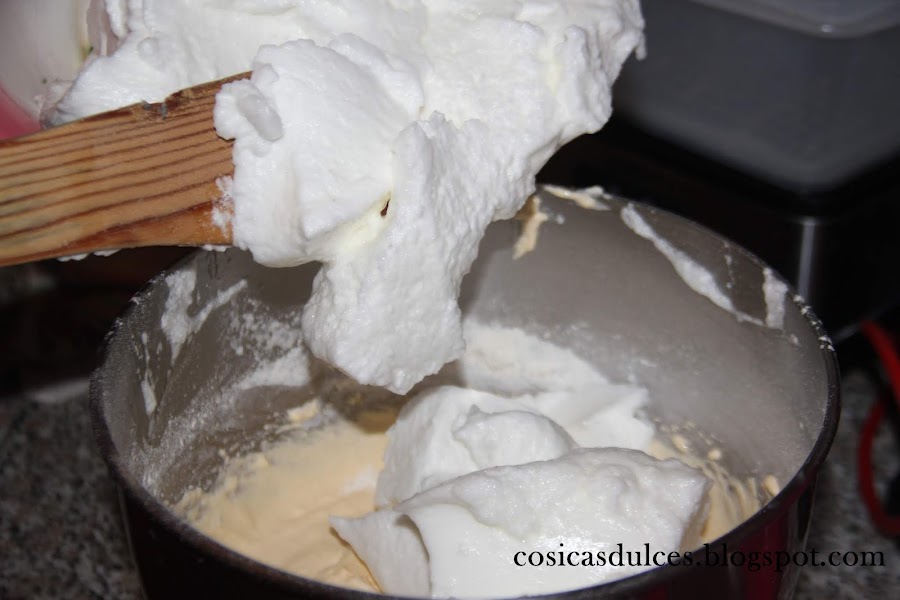 Finalmente incorporamos las claras que previamente habremos montado a punto de nieve.