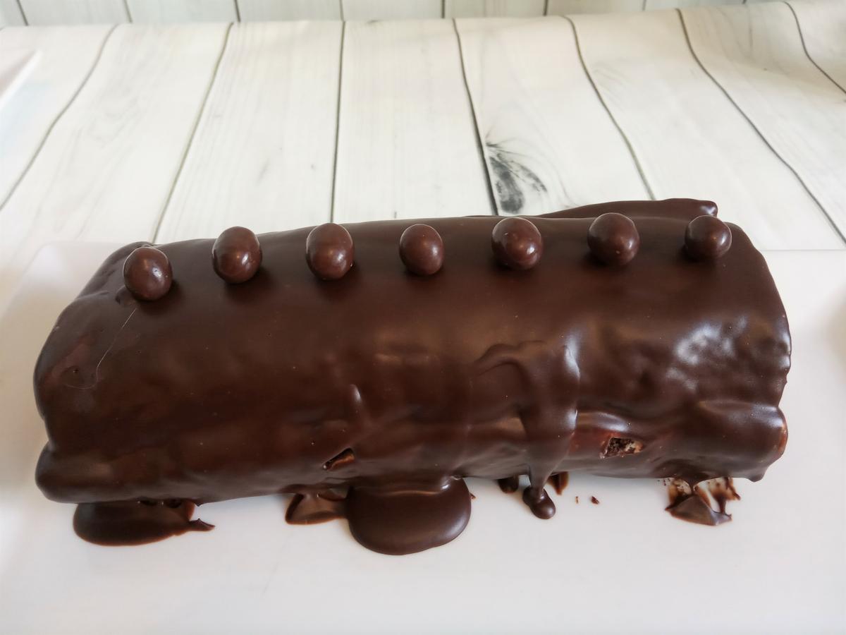 Lo desenrollamos y rellenamos de la crema de nata (crema de leche) y queso (o el relleno que nos guste) y volvemos a enrollar ayudándonos del papel del horno o de un paño. Metemos en la nevera para que coja consistencia.