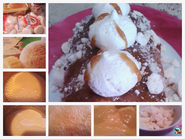Ayer después del almuerzo hice este brazo gitano para mi madre, hoy tiene una comida en casa de unos amigos suyos...Cuando llegue me pido un postre para la ocasión...!!Vaya!! tengo que improvisar, me fui al super y compre unos productos típicos de canarias que se pueden encontrar en cualquier supermercado: Helado de gofio: (una harina de cereales tostados que se presenta en infinidad de platos, dulces y salados).