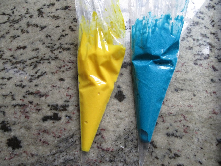 1- Mezclar muy bien todos os ingredientes, que quede una mezcla fina. Teñir de colores y meter en mangas pasteleras.