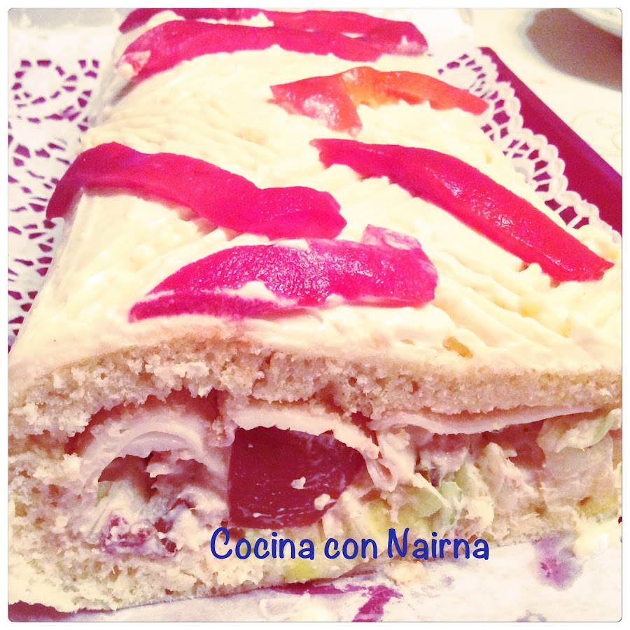 Enrollamos el bizcocho dando forma al brazo gitano, quitamos los bordes de ambos lados cubrimos de mayonesa y adornamos a nuestro gusto.