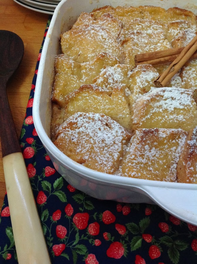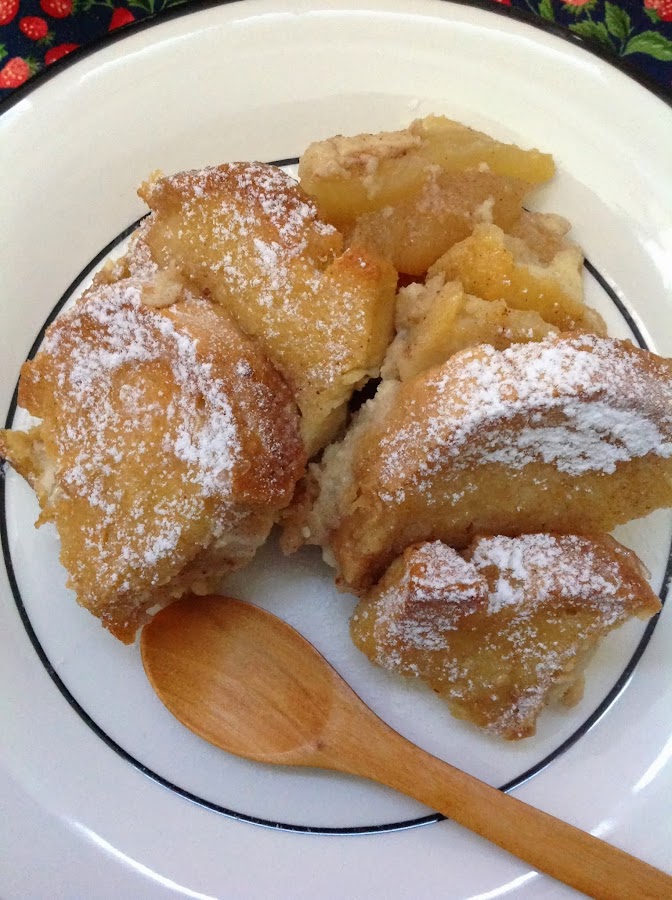 Si queréis que os diga la verdad, creo que nunca se me hubiese ocurrido hacer este postre porque, aunque es el segundo pudding de pan que hago, no es de los que más me guste. Sin embargo, cuando Whole Kitchen lo propuso para este mes de febrero me pareció que podría estar interesante hacer algo novedoso. Por eso, me fui a Pinterest y busqué alguna receta que me atrajera enormemente. Vi un montón de recetas clásicas de bread and butter, muchas con pasas, algunas con chocolate (ésta hubiera sido una apuesta segura en mi casa que son adictos al chocolate) pero me decanté por uno que llevaba fruta y además, fruta caramelizada. Me pareció que podía ser una mezcla entre una tatín y un pudding y por eso escogí esta receta de Williams-Sonoma.