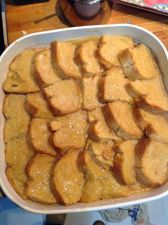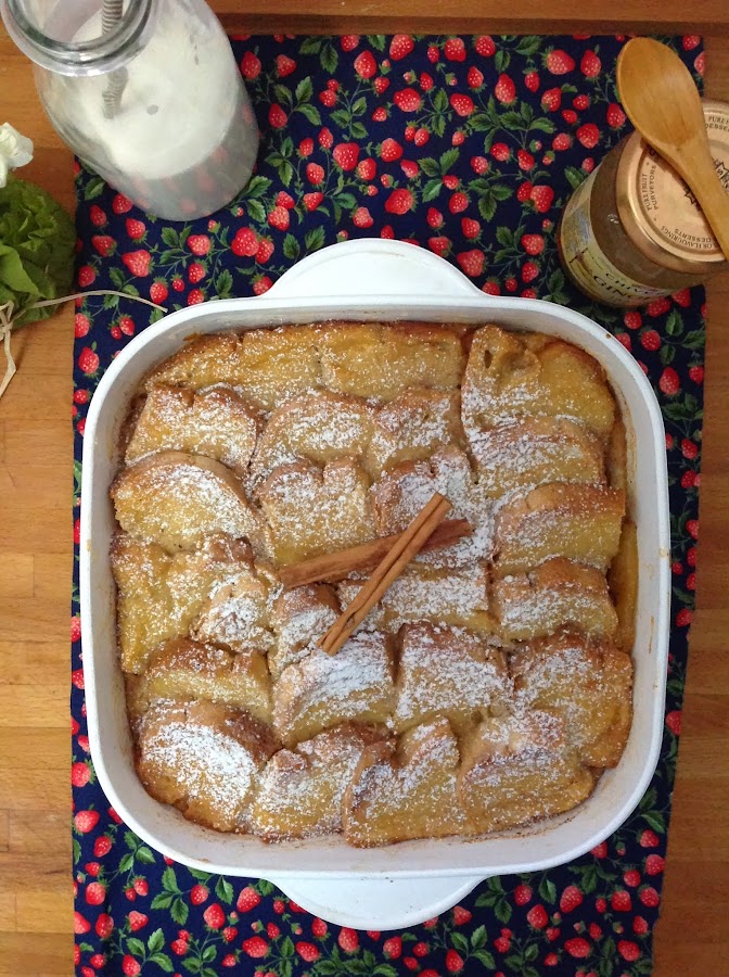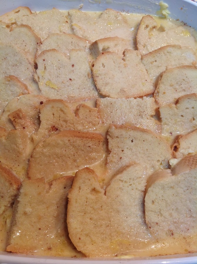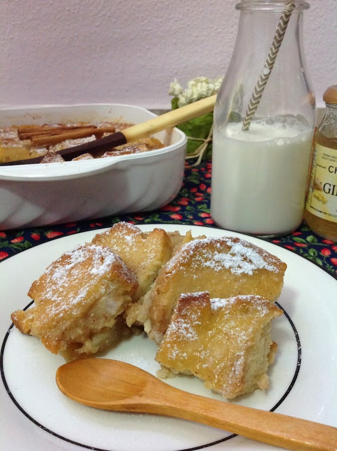 BREAD AND BUTTER PUDDING CON MERMELADA DE JENGIBRE Y PERAS CARAMELIZADAS