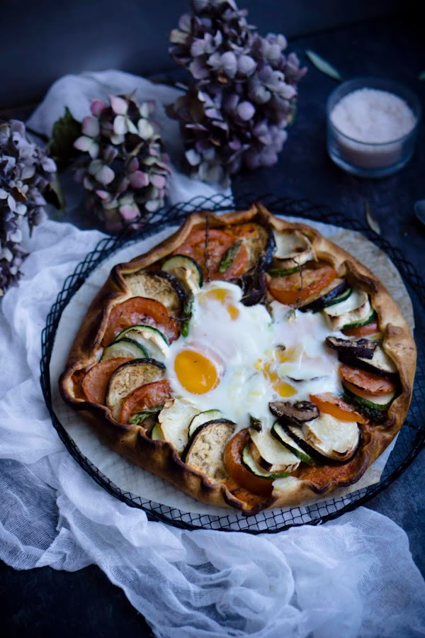Lo que más me gusta de esta receta es que una abre la nevera y todas aquellas verduras que están más allá que acá nos vienen de maravilla para crear esta fantástica galette. Cada vez tiro menos cosas, el precio de los alimentos de primera necesidad cada vez son más caros y me duele en el alma tenerlos que ver cómo van llenando el cubo de la basura. En esta ocasión he usado salchichas y bacon, por eso de darle carnaza al asunto y que sea un desayuno contundente, pero si quieres puedes quedarte con las verduras variedades y sin huevo para que sea estrictamente vegetariana.