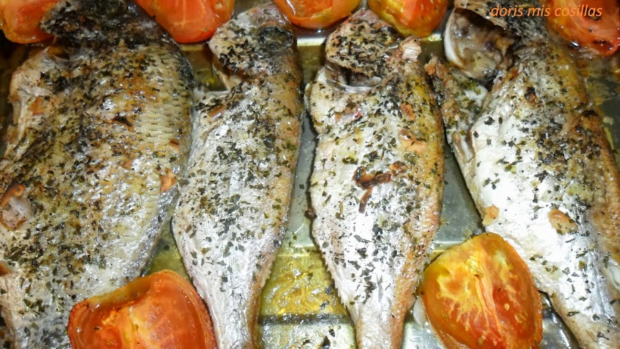 Precalentar el horno en ambas partes. Limpiamos muy bien las brecas retirando las espinas y tripa, haciendole una abertura con las tigeras y retiramos las escamas.
