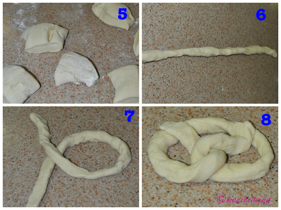 7.- Lo cruzamos, le damos una vuelta y cerramos dándole la forma del bretzel.