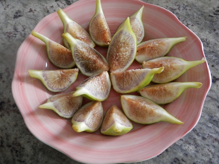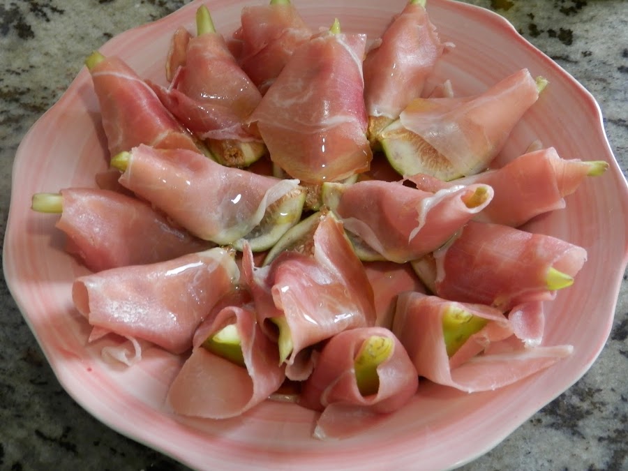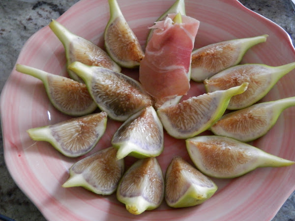 Ponemos encima los filetes de jamón en trozos que se adapten a las brevas