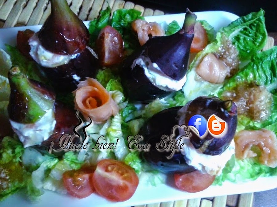 Brevas rellenas con queso crema, salmón ahumado y finas hierbas.