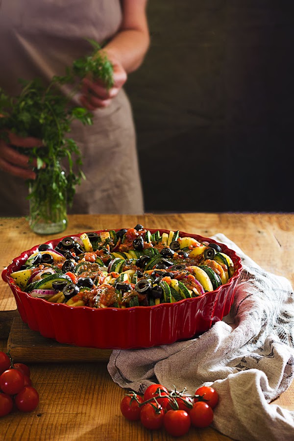 A punto de finalizar el verano hoy vuelvo con una receta muy sencilla, este brian de verduras, que tenía pendiente de publicar desde hace tiempo y que me ha venido perfecta para nuestro reto #ConservaLaLinea con el que cada mes mis compañeras y yo volvemos a juntarnos en torno a una receta en el que uno de los ingredientes sea una conserva. En este caso, la elegida ha sido las aceitunas negras que gracias a Bea... espero que os guste la propuesta de este mes.El brian de verduras es un plato mediterráneo de la cocina tradicional griega y podría considerarse el equivalente a nuestro pisto, o al ratatuille francés o la caponata italiana, en cualquier caso se trata de una receta saludable, rica, colorida, que nos ayuda a conservar la línea, donde las distintas hortalizas se juntan para conseguir una combinación de sabores increíble.