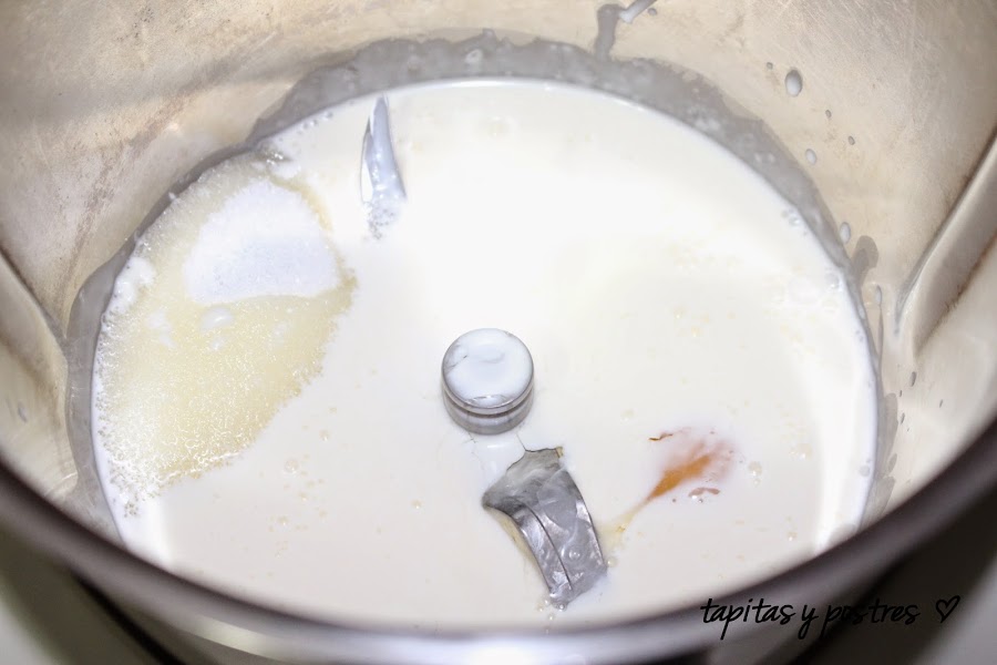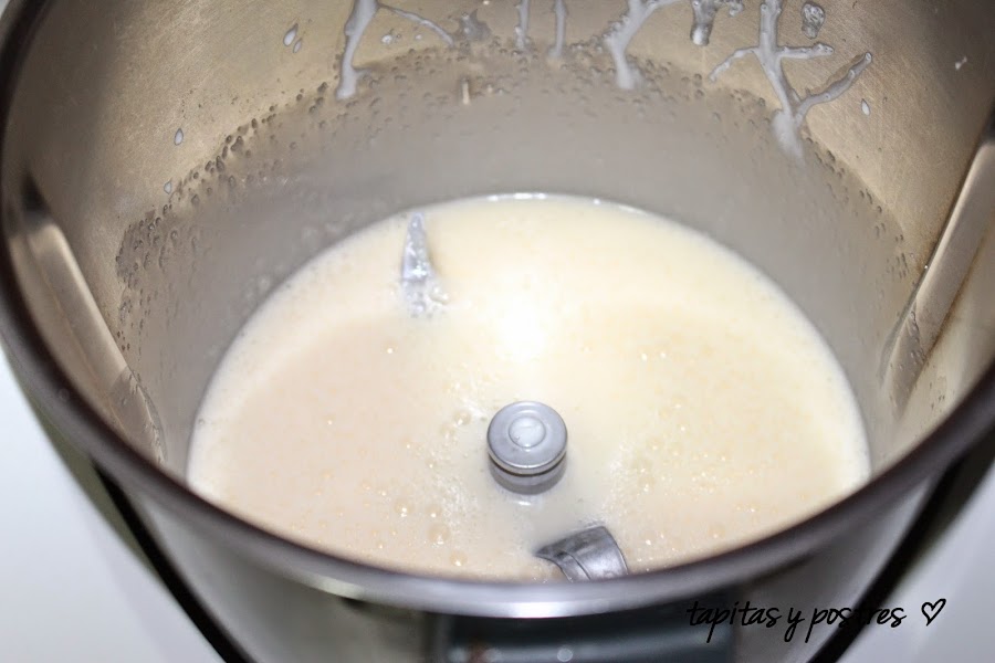 Ponemos la nata (crema de leche), el azúcar y los huevos batimos 30 segundos a velocidad 3.