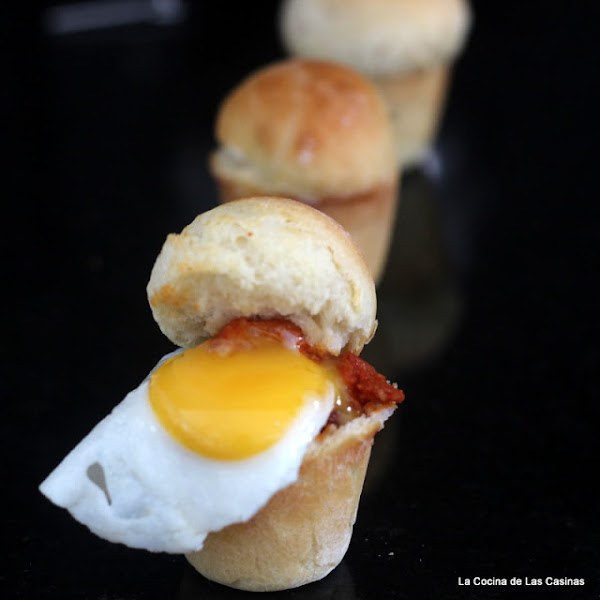 Esta es mi versión, creo que me acercaré más a la suya si la cocción del brioche la hago al vapor con un posterior gratinado (en las fotos que ví están un poco quemaditos) o les de un planchazo. Ver, veremos, prometido, de momento estos están también #cojonudos, perdón por la expresión, es la suya, jajaja.