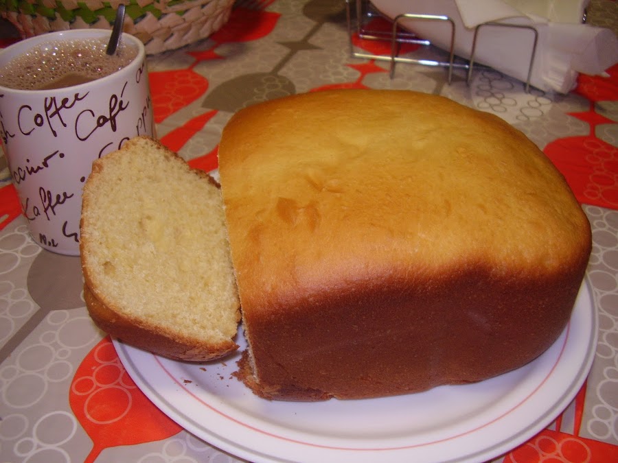Ponemos todos los ingredientes en el mismo orden en la panificadora menos la mantequilla. Programamos el programa 4 en mi caso (programa brioche), nivel de tostado medio y peso 500 grs, y cuando veamos que se ha integrado tanto los huevos como la harina, añadimos la mantequilla, y lo dejamos, la máquina se apaña ella solita. Cuando se acaba lo sacamos con cuidado de no quemarnos y lo volcamos. Riquísimoooo