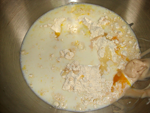 Ponemos la levadura fresca en la leche tibia para que se deshaga.
