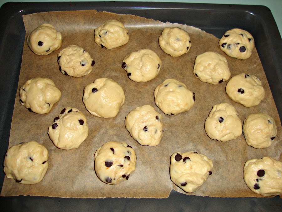 Luego vamos haciendo bolitas de unos 50-60 gramos las ponemos en la bandeja del horno sobre un papel de horno y tapamos de nuevo y volvemos a dejar reposar entre 30 y 60 minutos.