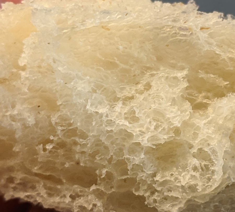 Así ha quedado la miga, muyyyy delicada y esponjosa. Está muyyyy bueno pero si te gustan muy dulces tendrás que poner más azúcar. Vamos con la receta