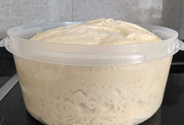 5. Cuándo vemos que sube en condiciones guardamos la masa en la nevera hasta el día siguiente