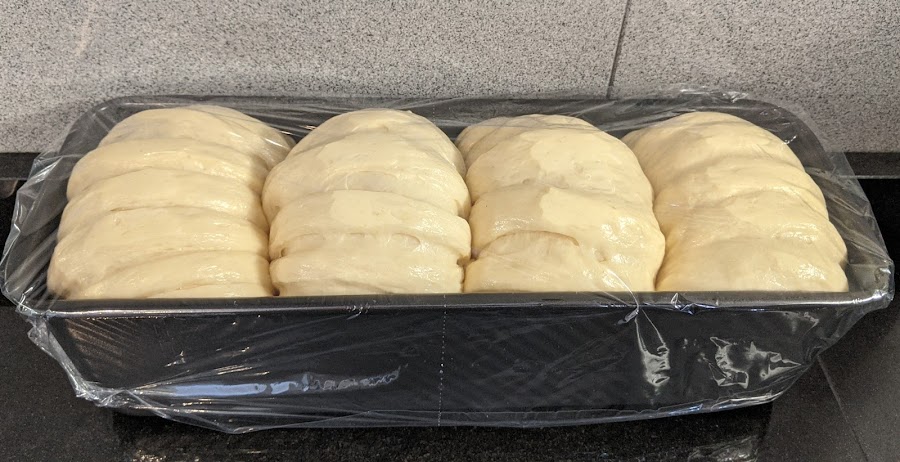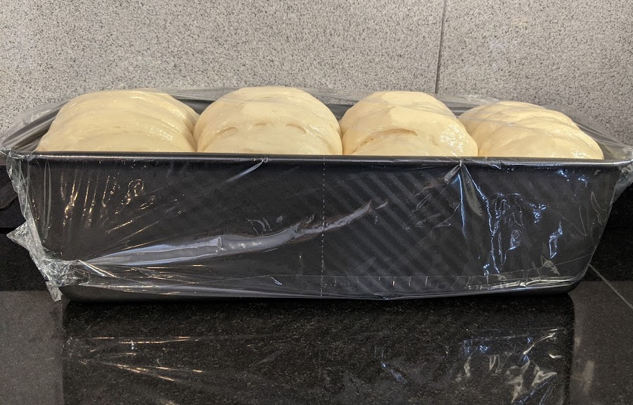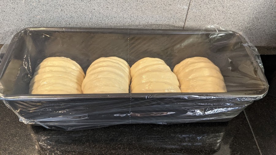 9. Colocamos las porciones en el molde y tapamos con film. Dejamos que leve totalmente
