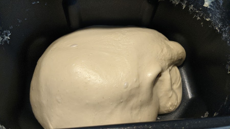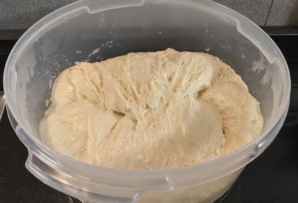3. De nuevo amasamos en el mismo programa y sacamos la masa a un táper aceitado