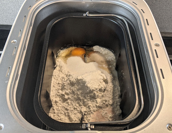 1. Ponemos los ingredientes en la cubeta excepto la mantequilla, menú solo amasado (masa para pasta) y al acabar dejamos que repose 15 minutos