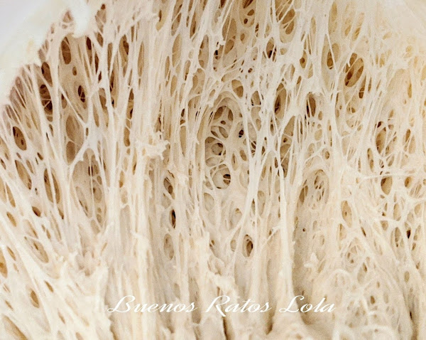 Como se puede apreciar en la foto el gluten no se desarrolla como en la amasadora pero el resultado final es buenísimo