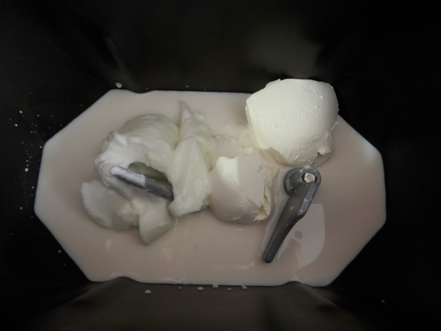 Echa en la cubeta la leche, la mantequilla y el yogur.