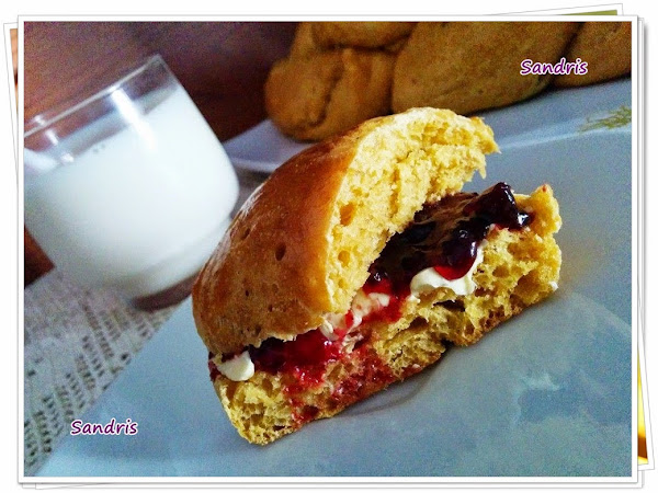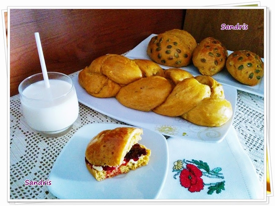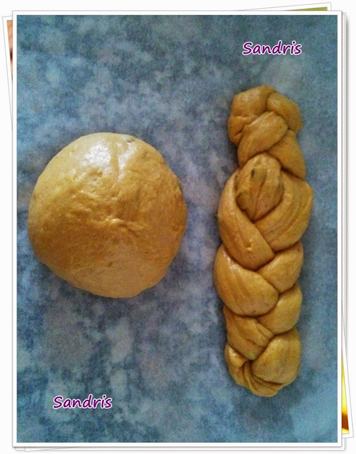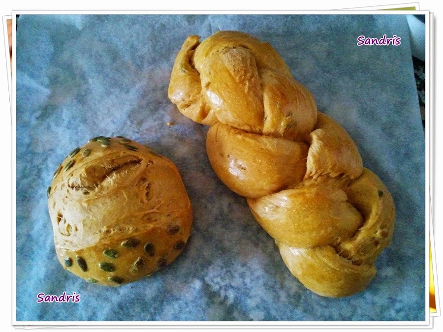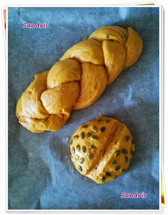 Hasta ahora, mis panes habían sido de diferentes formas y modelado. Así que esta vez me apetecía hacer algo así... con trenzas y aproveché la ocasión para hacer algo nuevo que no había hecho nunca; tanto por el tipo de pan, porque este es mi primer brioche y por la forma del pan, ya que nunca antes había hecho pan con trenzas. Y oye... no ha quedado nada mal y el pan me ha encantado. Me ha encantado el pan y el saborcillo de calabaza que hay... Desde luego... que es una receta super recomendable!!!