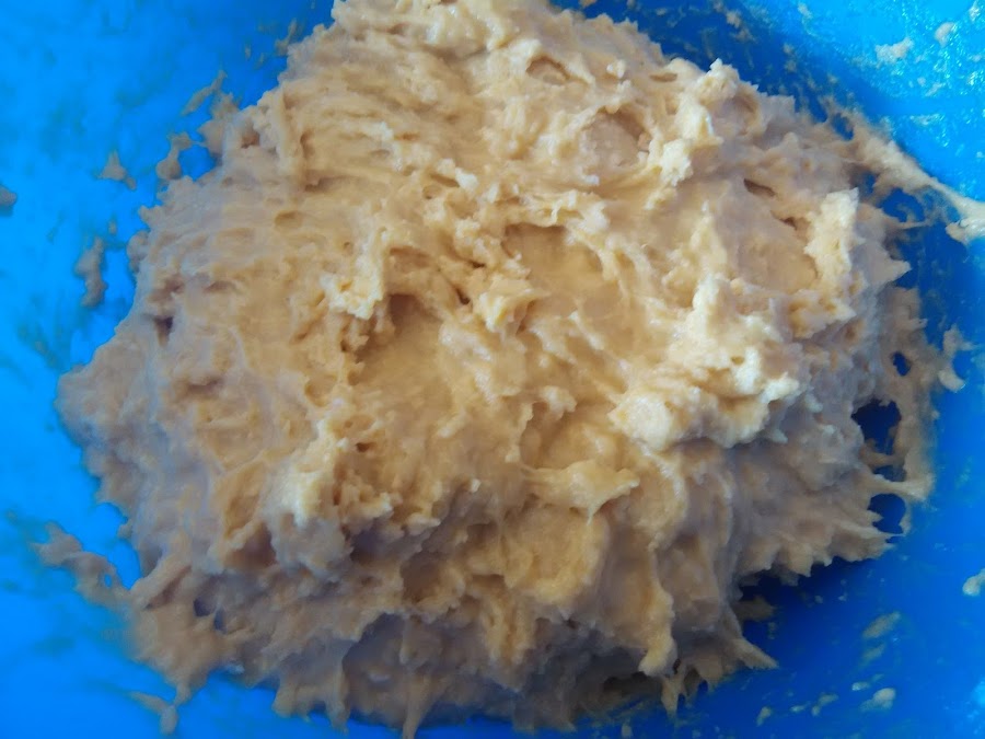 Por otro lado ha de tamizarse la harina. Con ella haremos una forma de volcán y en el centro iremos vertiendo poco a poco la leche preparada anteriormente. En este paso la masa se puede remover con una cuchara de palo. El resultado será bastante enharinado pero no es un problema por que lo siguiente es añadir los huevos batidos. Ahora si que es aconsejable ponerse con las manos en la masa, es pringoso pero efectivo, así que sin miedo, que después ya llegará el momento de limpiar.