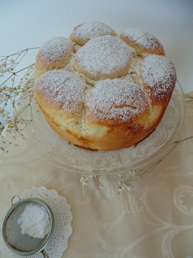 Mi secreto: siempre había querido elaborar un brioche de este tipo, de una pieza que pareciera una tarta pero de bollitos individuales a su vez. Me parecía difícil cuando lo veía pero mira...aquí está y es más fácil de lo que pueda parecer. Sólo hay que amasarlo bien y dejarlo levar correctamente y...habemus brioche!!!