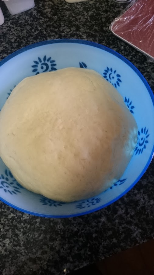 El resultado es una masa suave y elástica que no se pega en las manos. Dejamos doblar en un recipiente con papel film.
