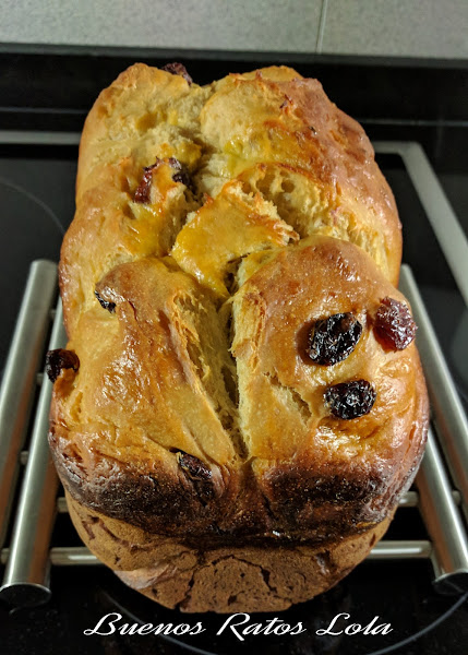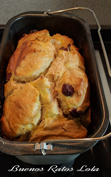 Una auténtica delicia el olor que hay en toda la casa mientras se hornea este rico bollo. La receta es de una compañera del grupo de cocina que dirijo, Cocinar con ollas GM, cecofry, panificadora... ,Violeta Pereda. He cambiado un par de cosas nada más, en esencia es la misma receta