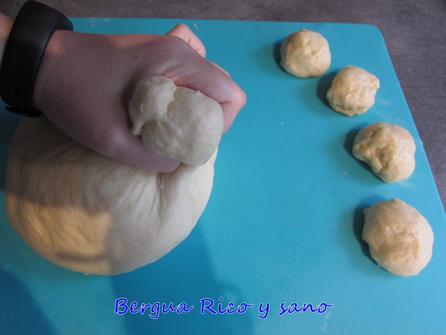 7. Dejamos que las bolitas de masa reposen 10 minutos ya en el molde para que se unan y termine el levado.