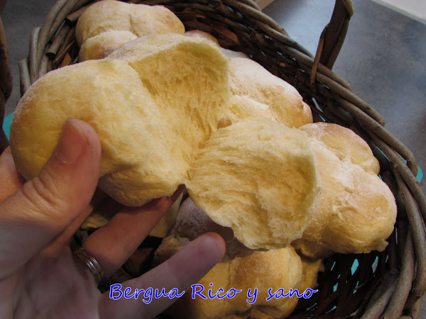 Se pueden formar los bollos en forma de panecillo, pero parte de lo que la hace tan fácil es que pones las bolitas de masa en el molde y crecen juntas y forman unas bonitas y deliciosas flores que luego se pueden separar fácilmente con las manos; además, al ser porciones pequeñas, se mantienen frescos y esponjosos más fácilmente. También se le pueden añadir trocitos de chocolate a la masa si quieres un bollito dulce, pero esta receta es para el panecillo básico.