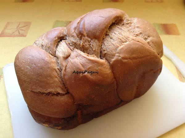 Las pepitas de chocolate las puse cuando la panificadora avisa pitando para añadir ingredientes, y las integró de tal manera que desaparecieron en la masa, así en vez de tropezones de chocolate, todo el brioche tiene un suave sabor a chocolate.