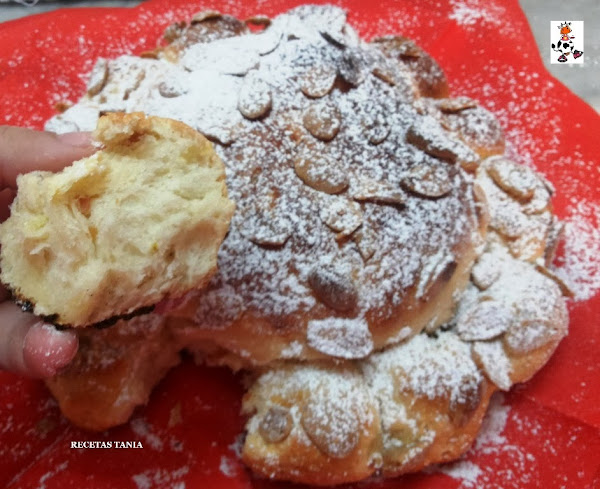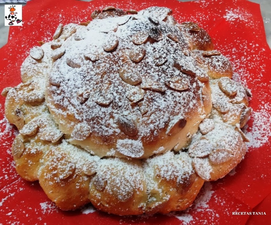 Pintar con el huevo batido y espolvoreamos las almendras laminadas. Horneamos el brioche a 175 grados durante 30 minutos,mas o menos.