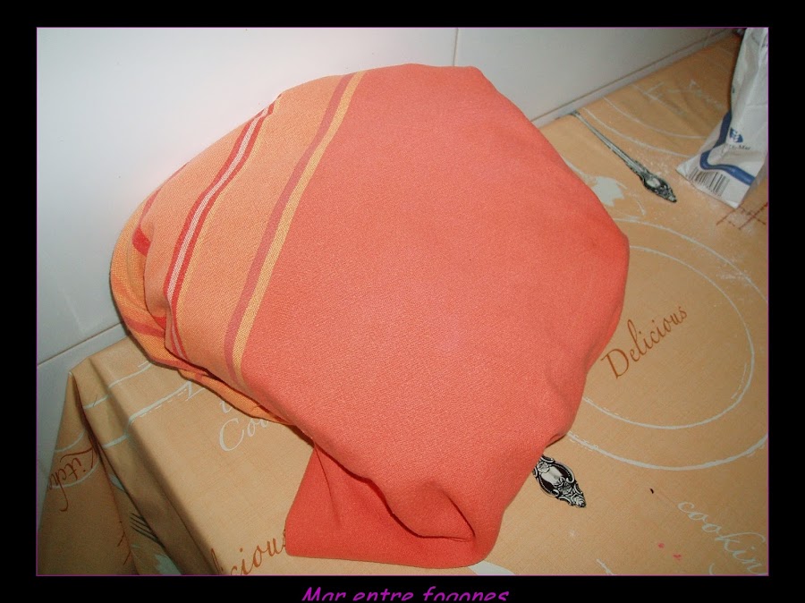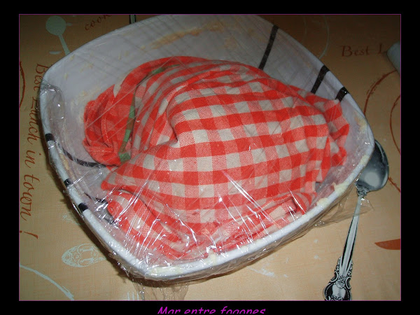 Tapamos con un trapo film transparente, yo como en Lugo las temperaturas son bastante frías además lo tapé con un mantel bien enrollado todo, y lo puse al lado de la vitro que estaba usando para cocinar. Dejamos reposar 1 hora.