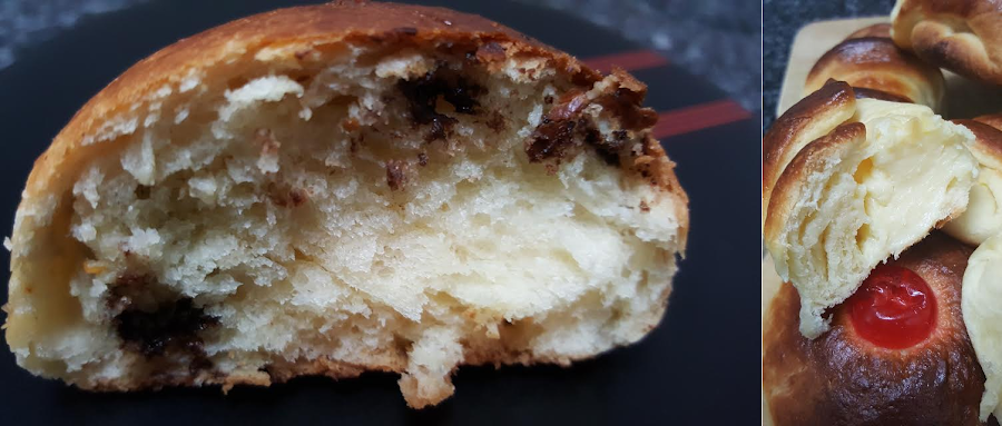 Os traigo dos delicias, un Brioche relleno de crema, otro de pepitas de choco y de almendras.... al que mas os guste, pero probaros porque de verdad que vale la pena.