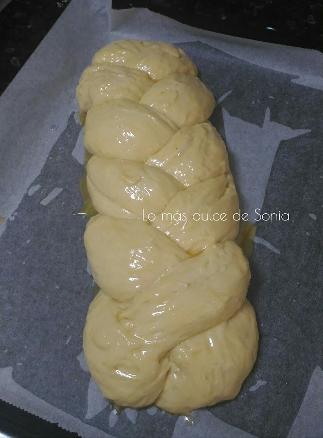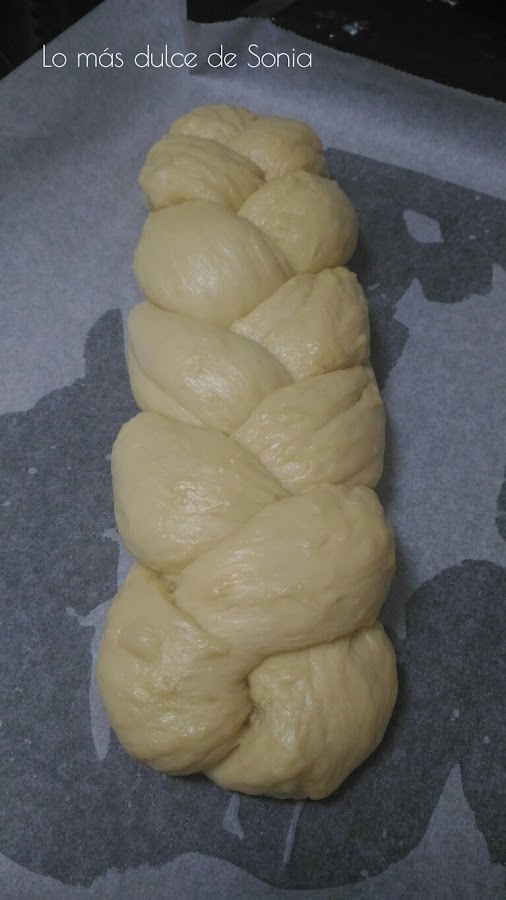 Pasada la hora en la nevera, sacamos la masa del bol y formamos nuestras porciones, del tamaño que queramos. Yo hice una sola trenza.