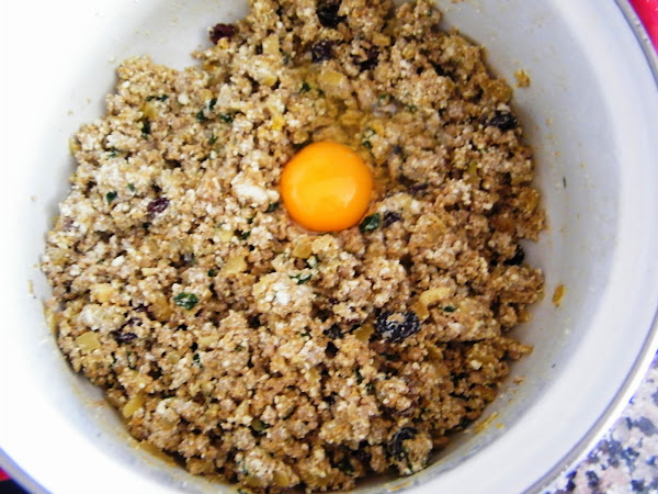 4. Justo antes de ir a rellenar, añadimos a la carne y el queso dos huevos. Mezclamos bien en crudo. Es un paso opcional, pero hace que queden más jugosos y compactos.