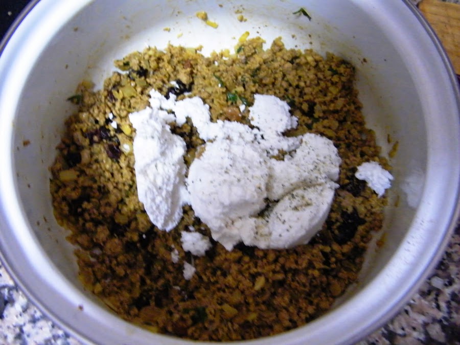 3. Cuando esté prácticamente cocinada la carne, apartamos del fuego y dejamos que se enfríe para añadir el requesón o ricotta. Mezclamos bien de nuevo y dejamos enfriar antes de rellenar.