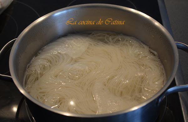 Mientras hacemos los fideos siguiendo las instrucciones del fabricante, normalmente se dejan hirviendo en agua con sal durante 3 minutos.