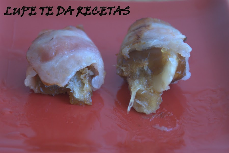 INGREDIENTES Dátiles sin hueso (mejor naturales, sin confitar) Lonchas finas de bacon ahumado (yo uso bacon ahumado pero el fresco los hace más fuertes de sabor si lo prefieres) ELABORACIÓN Las lonchas de bacon deben ser finitas y estrechas. Envolvemos cada dátil en una loncha de bacon y la sujetamos con un palillo. Los dátiles con bacon se pueden preparar de muchas maneras, fritos, horneados, en ...