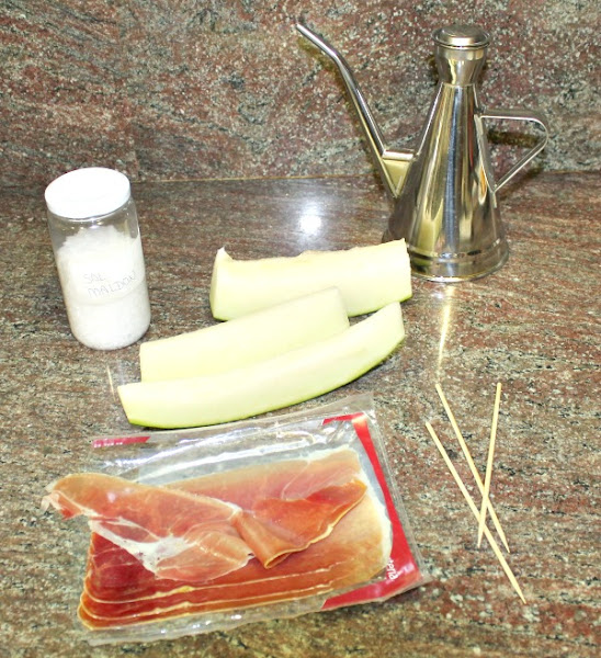 Se trata de cortar el jamón en cuadrados, e ir insertando un trozo de melón, un trozo de jamón, melón, jamón, y el último será jamón.