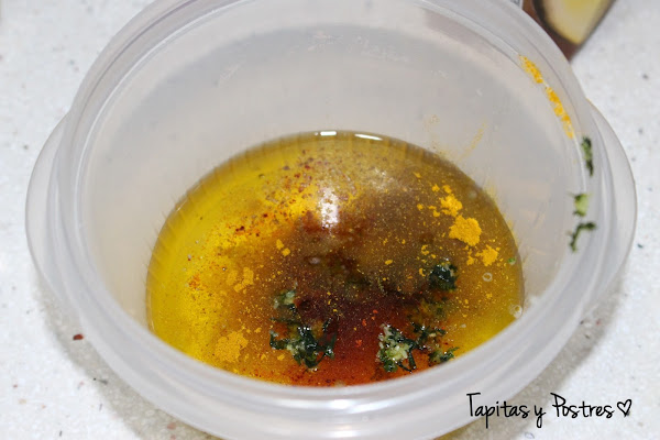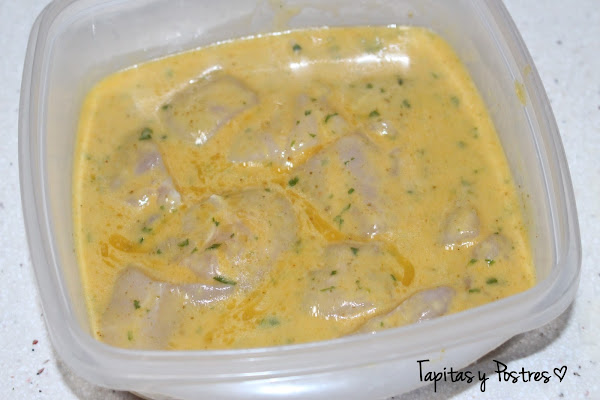 Ponemos las pechugas dentro del adobo y las dejamos marinar un par de horas.