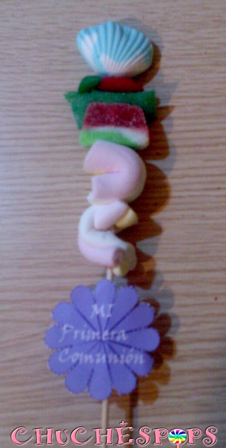 Esta vez os he puesto unas brochetas con un "toque marinero" dedicada a los niños que toman la comunión.