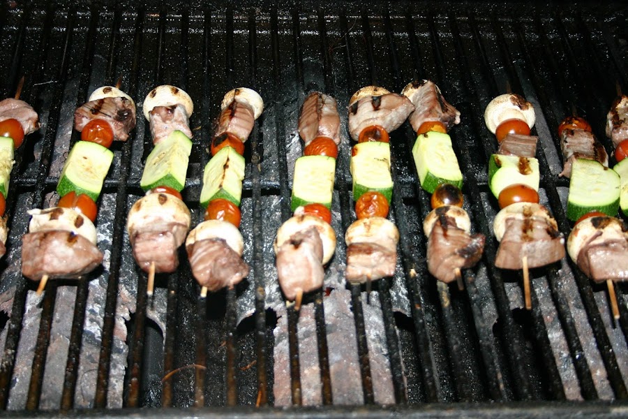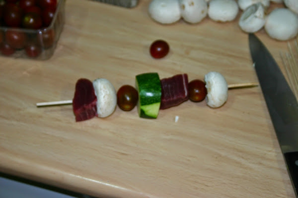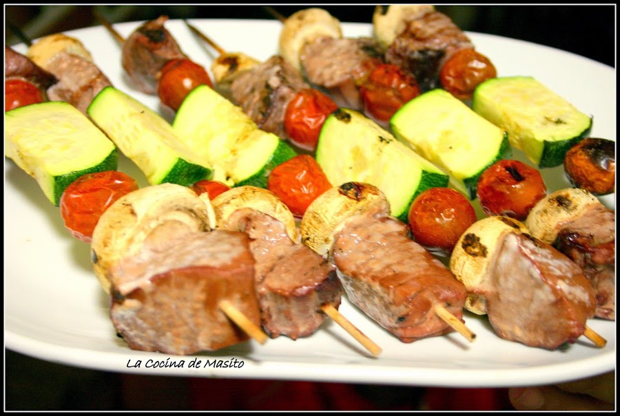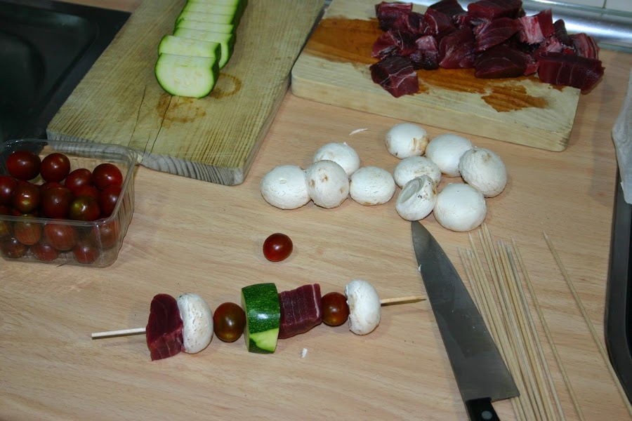 y montar las brochetas por que ni los champis ni los tomates hay que partirlos