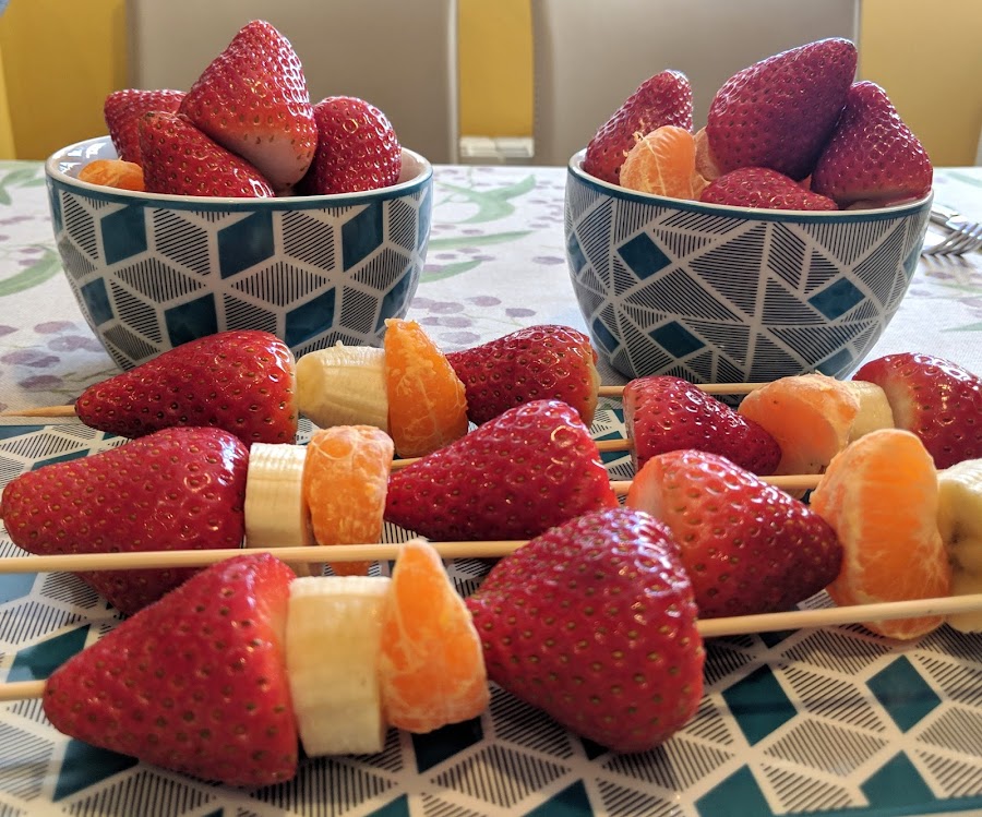 Elige las frutas que prefieras. Lo ideal es comprar de temporada. Puedes montar brochetas con solo fresas o intercalar distintas frutas: plátano, kiwi y mandarina, por ejemplo, van también genial con el chocolate
