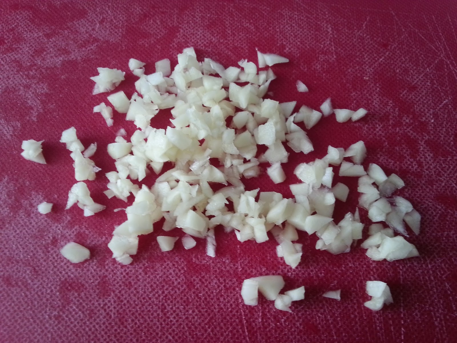 2. - Lo primero que haremos será preparar el aliño, poniendo el ajo picado junto con el pimentón, el vino la sal y un poco de aceite.