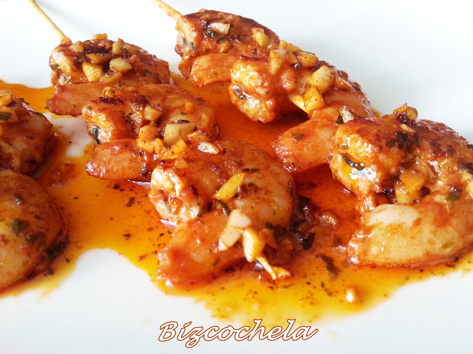 4. - Pasado un tiempo, para mí mejor una hora o dos, los sacamos y los vamos ensartando en unas brochetas.