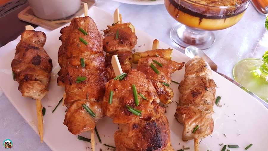 Las cocinamos bien por todos los lados. Servimos las brochetas con un poco de cebollino fresco picado por encima.